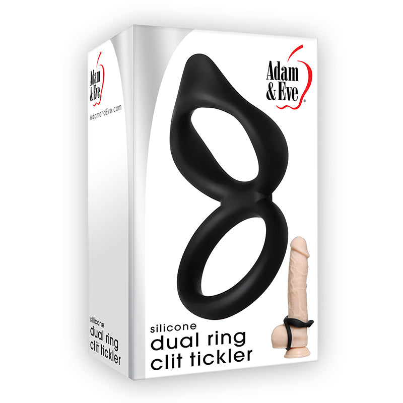 Adam & Eve Dual Ring Clit Tickler Silicone Clit Stimulating Cockring Black