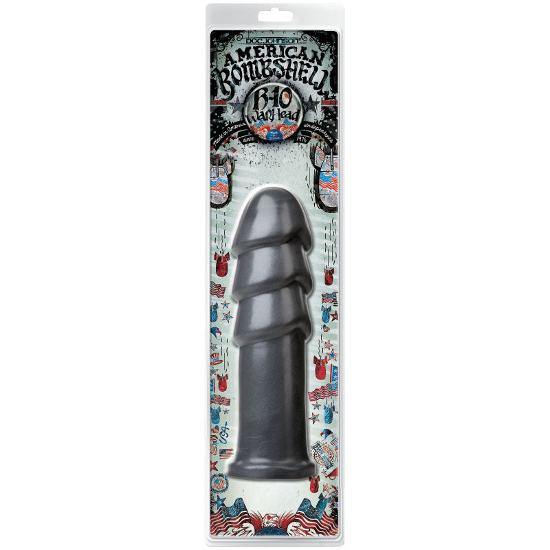 The B-10 Warhead is the next generation of tactical bedroom toys! This 10 in. behemoth (9.7 in. insertable) features a triple rippled head for extraordinary stimulation. The long and thick shaft reaches a circumference of 8.5 in. at its fullest. This Warhead takes no prisoners and leaves no body unfilled. Made of PVC with gunmetal color.