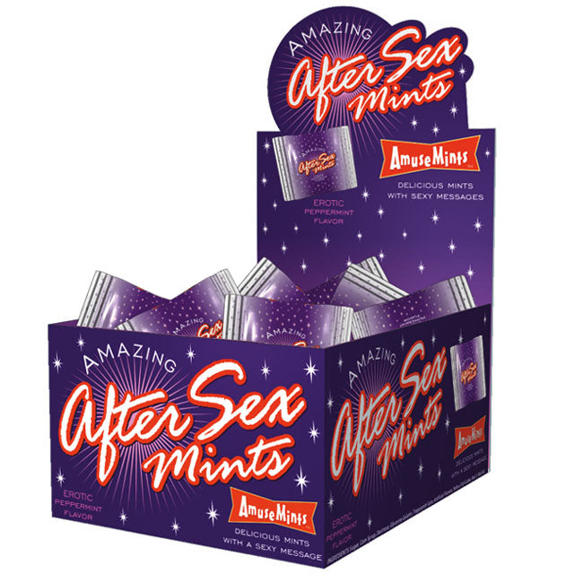 Luscious peppermint-flavored special mints are individually packaged with a sexy message printed on each wrapper.