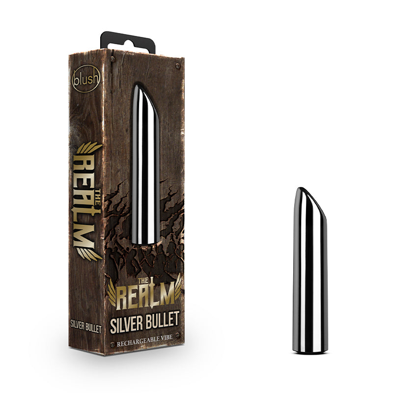A bullet cast from silver is one of the few weapons that are effective against a werewolf witch vampire or other monsters. You and your orgasms will also be utterly vulnerable to its epic power and 10 rumbly vibration functions! The Realm Silver Bullet fits in the base and pairs perfectly with any of your favorite Lock On dildos. Body safe waterproof rechargeable and easy to clean.