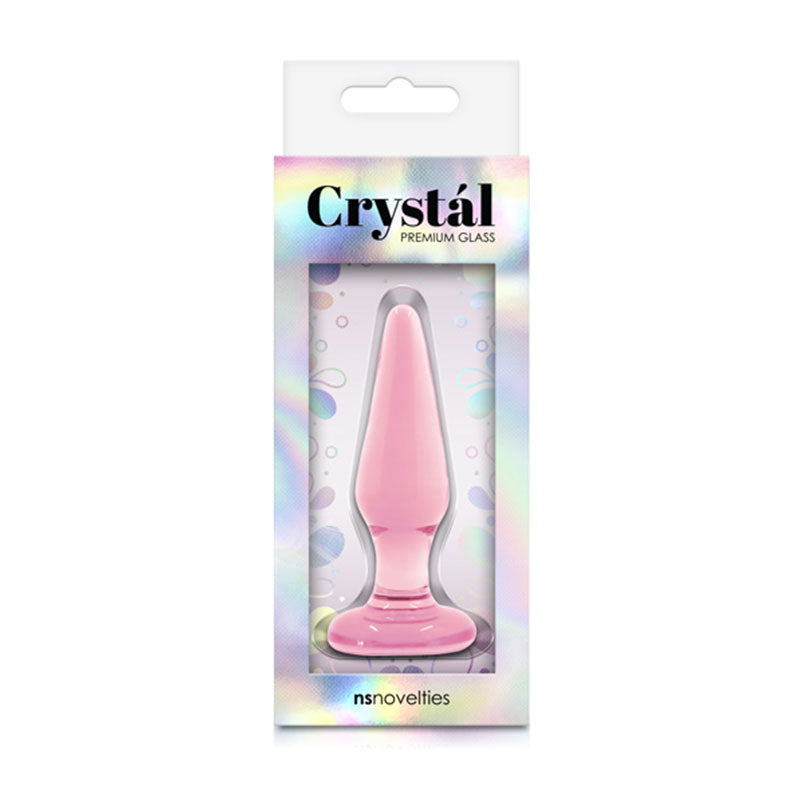 Liberating Crystal Premium Glass Small Tapered Anal Plug from New Sensation Novelties is ready to soothe your inner aches and take your backdoor play to new exciting heights. Designed for intermediate kinky sextoy users Crystal Small Anal Probe features a smooth cool surface that delights the senses as it fills you up. A tapered tip and comfortable swell massage your inner depths while a narrow neck and round base keep your play safe by situating between your cheeks and prevents the plug from slipping too far inside. Hygienically superior borosilicate glass can be warmed up or cooled down prior to play by submerging in water and is compatible with all of your favorite lubes - water oil and silicone. Lubricate well for extra slip and slide and clean up before and after use with antibacterial soap or toy cleaner and a warm water rinse. NS Novelties Small Crystal Glass Tapered Anal Plug is annealed for safety and measures 3.25 inches (8 cm) long has a comfortable 4 inches girth (1.25 inches diameter) and is always ready to add some spice to your backdoor play.Available in small Blue & Pink Colors.