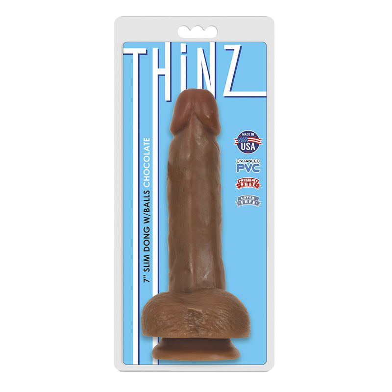 Curve Toys Thinz 7 in. Slim Dildo with Balls & Suction Cup Brown