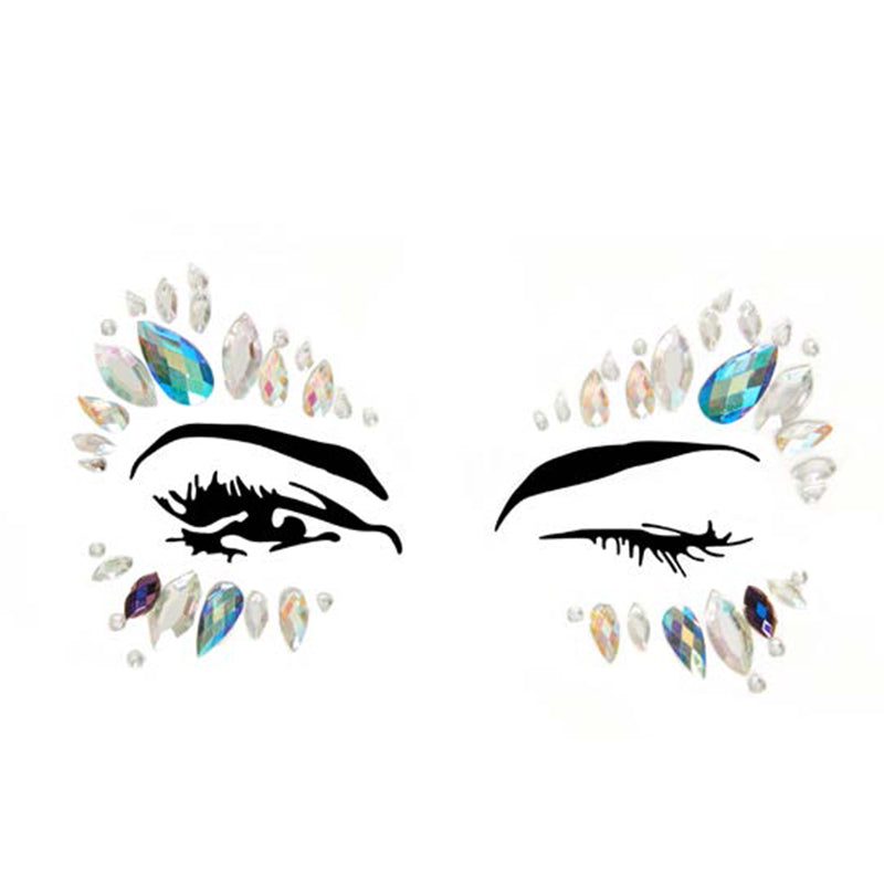Desna Adhesive Face Jewels Sticker. They're so easy to apply. Just peel and stick. All jewels come pre-attached so there's no messing around They are designed for one time use but you can reuse for several times if you keep it in good condition. Once the glue has dried out they can be reapplied with eyelash or body glue. Gently peel off the sheet after slightly bending the backing in the opposite direction and press firmly against clean oil-free skin. Ideally face and body should be free of creams lotions and makeup before applying. Gems are acrylic and faceted reflecting light. Jewels only no other items are included!