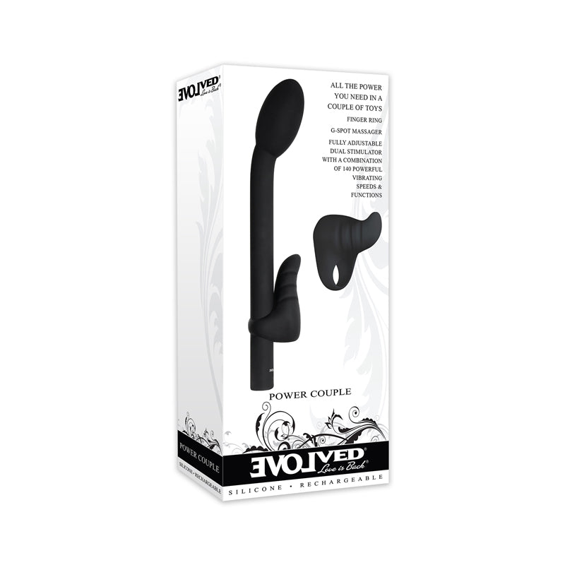 Evolved Power Couple Fully Adjustable 2-Piece Rechargeable Silicone Dual Stimulator Black