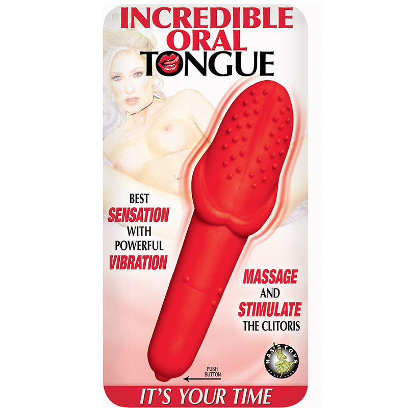 Silicone and ABS mini vibe shaped like a tongue massages and stimulates the clitoris. Waterproof. Measures 6.25 in. long by 2 in. diameter. One AA battery not included.