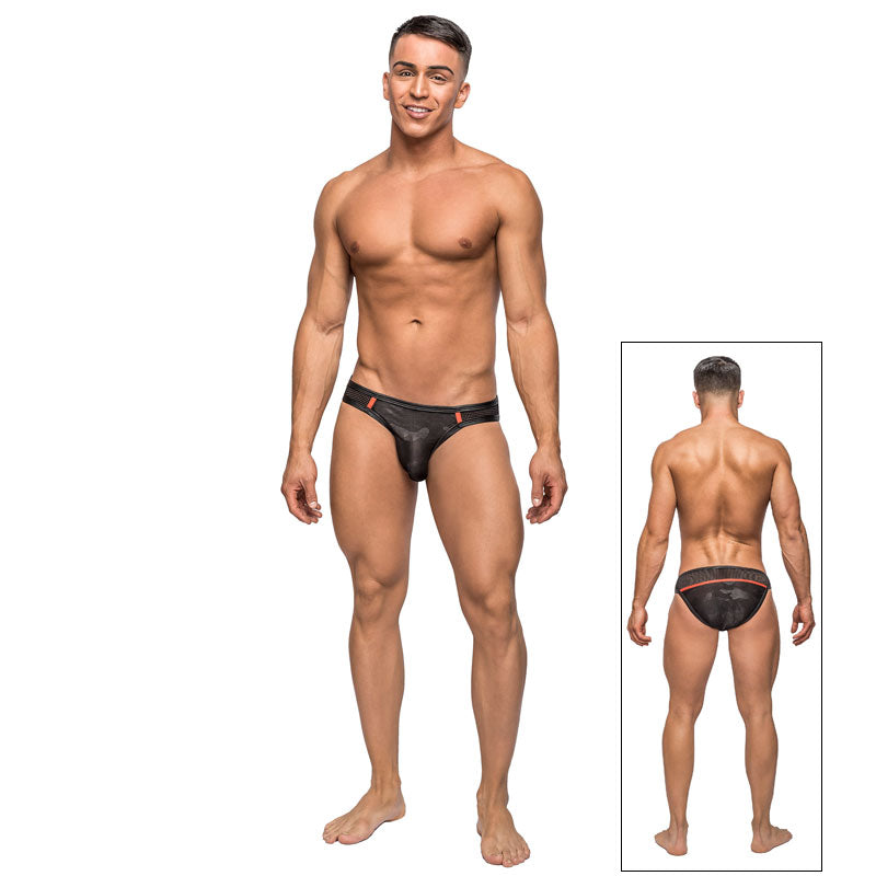 This camo bikini enhances your body's natural contours while keeping you supported. Features bright orange accents and a wet look waistband with breathable sport net panels and remarkably soft fabric. These shorts will quickly become a go-to for busy days. Size: Medium.