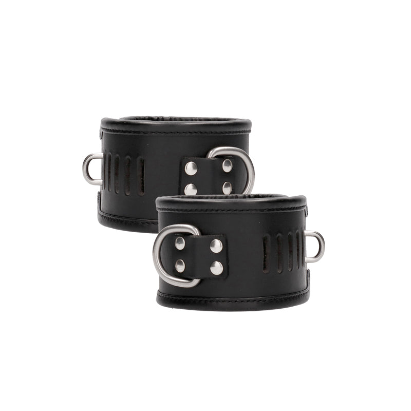 @winter2019-63Restraint Ankle Cuff With Padlock - Black. This professional RESTRAINT ANKLE CUFF WITH PADLOCK will show who’s the boss in your BDSM adventures! Keep your disobedient sub under strict control at all times. Made from genuine supple saddle leather these adjustable ankle cuffs mean business! Even the most excitable of lovers will stay in place when you attach the sturdy metal D-ring anywhere you like. The ankle cuff has 9 different measurement settings for a snug fit and comes with a stainless steel padlock including 2 keys for extra security. It has a total length of 36cm (14”) a width of 6.9cm (2.7”) and weighs 300 grams (10.6oz).