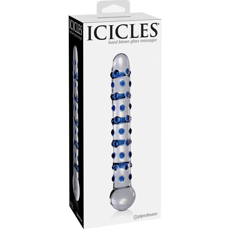 Pipedream Icicles No. 50 Textured 8.25 in. Glass Dildo Blue/Clear