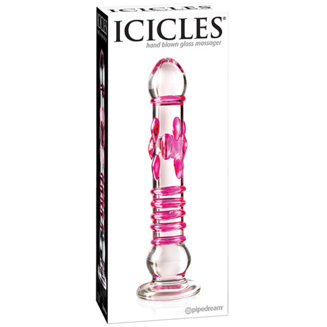 Pipedream Icicles No. 6 Textured 8.5 in. Glass Dildo Pink/Clear