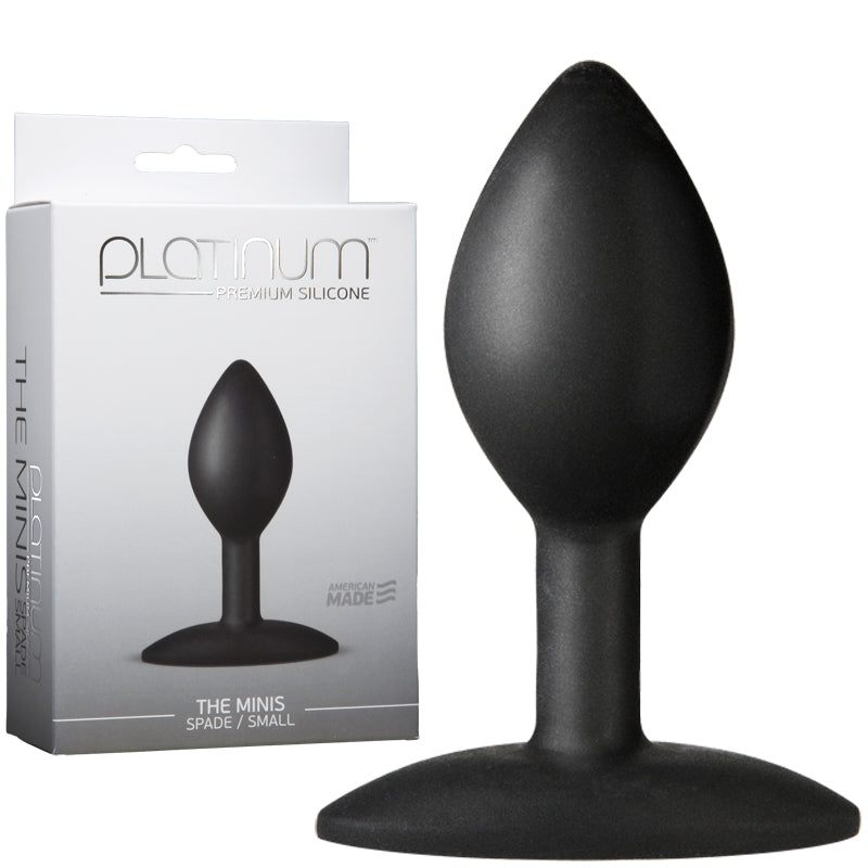 Made of Platinum Premium Silicone this classically shaped plug features a velvety matte finish ergonomic flat base and ultra-flexible design for easy wear. The perfect size for beginners the Spade Mini in size Small offers 3 in. of usable length with 1.3 in. diameter. Hypoallergenic and Phthalate-free. Proudly Made in America.