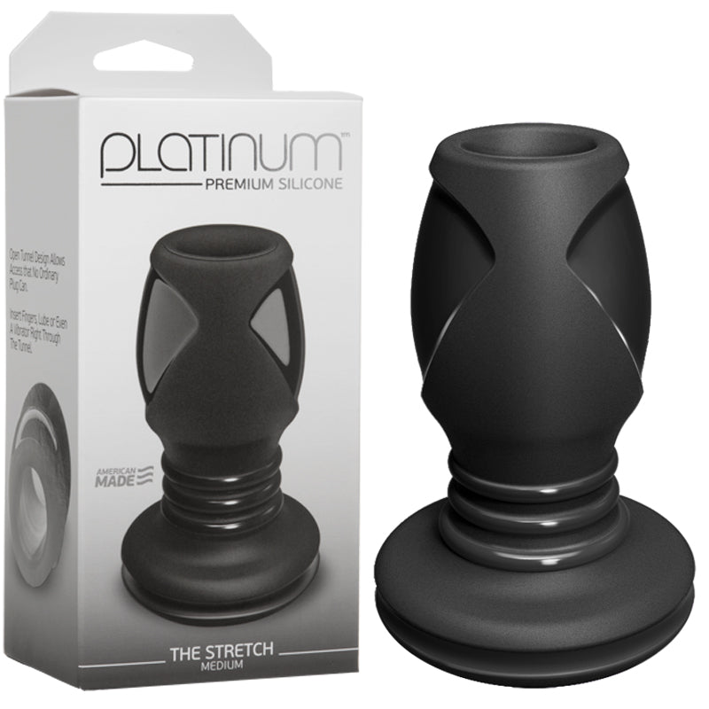 Explore your partner's backdoor with this open-tunnel anal plug. Firm yet flexible The Stretch Small delivers the satisfying ‘filling’ sensation of a regular plug but also features a hollow-bodied design allowing access. Insert fingers lube or even a vibrator right through the tunnel for endless possibilities in bedroom play. Made of health grade silicone this plug reveals a two-tone finish for increased stimulation a flat base for comfortable wearability 3.5 in. usable length and a 2 in. width.