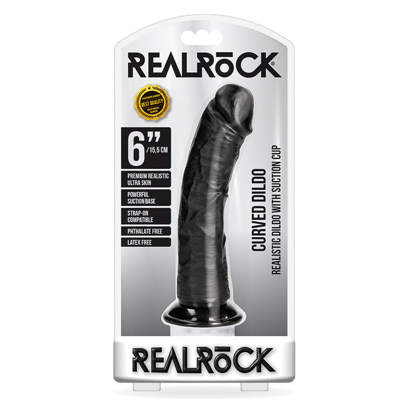 RealRock Realistic 6 in. Curved Dildo With Suction Cup Black