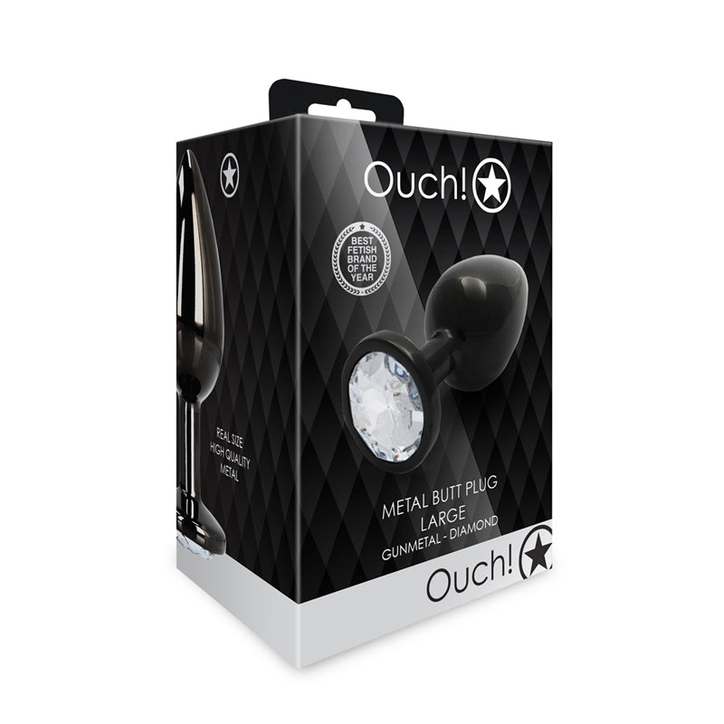 Shots Ouch! Round Gem Butt Plug Large Gunmetal/Diamond