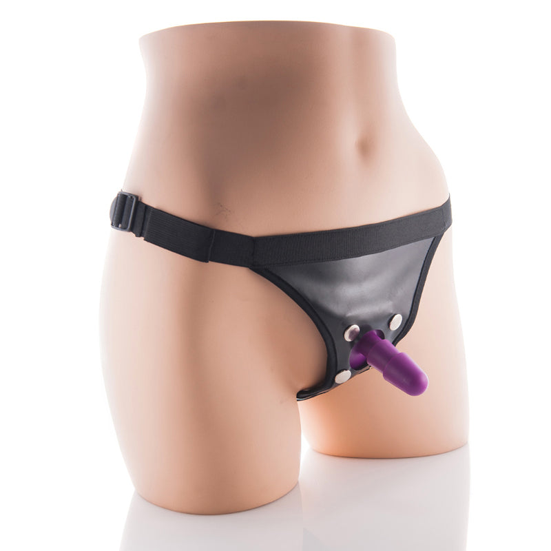 Kit includes utility belt harness and stud adapter. Sturdy and supportive. Compatible with all strap on tools and comparable brands. Fits waist up to 60 in. The Stud Adapter is made using plastic with a polyurethane coating. The utility belt is made using nylon and a faux leather.