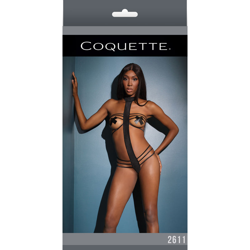 "Strappy detailed cupless teddyFeatures side boningHalter neck designBlack | Stretch KnitOS"