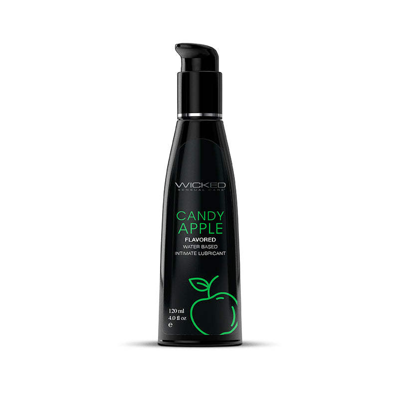 Aqua Candy Apple from the Wicked Sensual Care Collection adds subtle natural flavors to enhance oral pleasures. The water-based formula is a combination of an elegant lubricant and a flavor sensation. Never sticky and without an aftertaste it is long lasting latex friendly paraben free and vegan with no animal byproducts or testing. Cleans away easily with water. 4 fl. oz/120 ml.